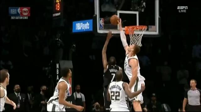 篮网一度领先,不过字母哥单挑杜兰特转身勾手命中,大洛随后封盖了杜兰特的上篮,随后米德尔顿转身后仰中投命中,雄鹿一波4-0反超比分。