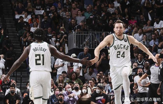 今年有很多人看好雄鹿成为总冠军,原因就是霍勒迪。霍勒迪这位球员加盟雄鹿后,雄鹿的整体实力提升了一个级别。本场比赛前霍勒迪在季后赛场均有15+6+7.5的数据,投篮命中率为42.6%,三分球25%,乍一看数据不是很突出。但是他每场比赛有1.5次抢断,场均出战超过37分钟的情况下犯规次数不到2次,失误只有2.3次。霍勒迪在攻防两端有一个特点:就是稳。他很少犯错,防守时如同一块牛皮糖。他总是能找到最好的方案将进攻者限制。