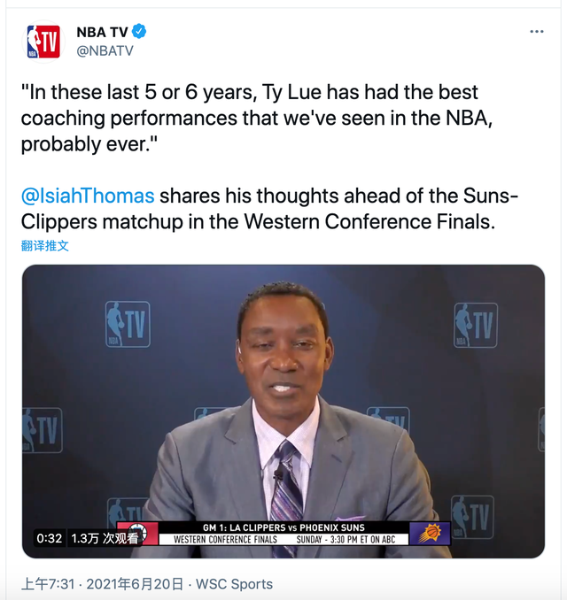 另一方面,名宿伊赛亚-托马斯在接受采访时就称赞了快船主教练泰伦-卢的表现:
