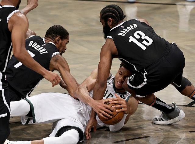 只可惜,无论是哈登、哈里斯,还是站在场边看球的纳什,都没能给予KD哪怕一丝喘息的空间。