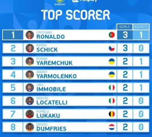 2.《[搜达足球]领跑欧洲杯射手榜是“他”!C罗队友包办4球,世界冠军中卫也犯错》仅供读者参考,本网站未对该内容进行证实,对其原创性、真实性、完整性、及时性不作任何保证。