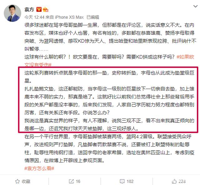 雄鹿进东决,阿杜被累死,纳什被批评,袁方:字母成为垫堂级巨星。这样的袁方,很敢说,哪怕会引发批评,乃至是质疑,他也一如既往地坚持自己的观点。这样的人,还是很有勇气的。这一次的说法,也是实话实说而已。