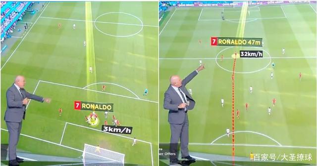 贝茵体育在比赛中场休息时分析了比赛的首个进球,得出的结论是C罗在这97米的冲刺距离中最高速度为32公里/时。