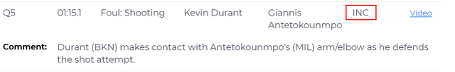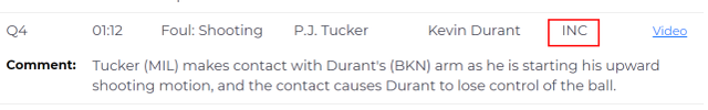 距离第四节结束还剩1分12秒时,杜兰特面对塔克的防守,急停跳投,结果球被塔克拍掉。米德尔顿捡到球,发起反击。裁判报告指出,杜兰特做出投篮动作时,塔克打到了他的手臂,这次接触导致杜兰特失去对球的控制,这是一次投篮犯规的漏判,杜兰特本该获得两次罚球机会。