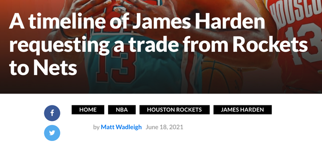 那么哈登究竟是如何离开火箭?美媒马特-瓦德利回顾了哈登离开火箭的时间线: