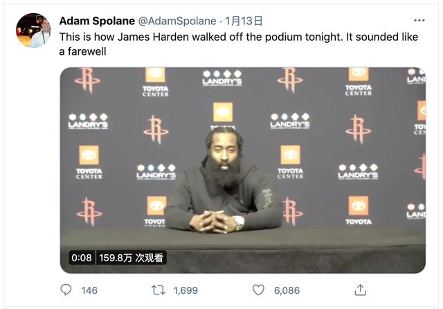 2021年1月12日:哈登明确表示火箭实力不足,并且认为这是无法解决的问题;