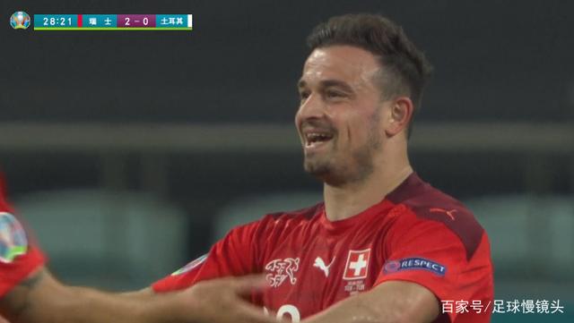 比赛第26分钟,瑞士队组织进攻,沙奇里在禁区外一脚远射破门,比分来到了2-0,在破门后,瑞士主帅非常开心,沙奇里和队友拥抱在一起庆祝,土耳其的丢球数来到7个,欧洲杯24支球队最多。连续四届世界大赛破门,沙奇里媲美C罗、卢卡库。