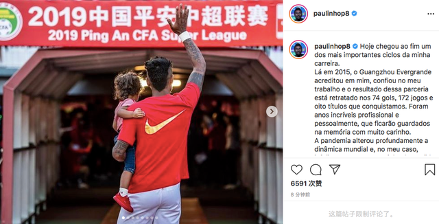 在此,我们衷心感谢世界一流球星保利尼奥为中国球迷展示了无与伦比的足球天赋和技战术水平,为广州足球俱乐部及球队做出了突出贡献!我们诚挚祝福永远的好朋友保利尼奥未来一切顺利,在职业生涯中创造新的更大的辉煌成就!