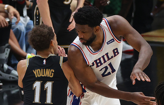 后半节,小库里抛投打进,博格丹打铁,恩比德极限后仰跳投命中,特雷杨超远三分终于造到犯规,兴奋的挥拳庆祝,三罚中二!哈里斯跳投命中,许尔特抛投弹无虚发,此后两队连续4回合打铁,还是科林斯跳投打破僵局,霍华德抢下篮板,老鹰主动叫停。暂停回来,塞布尔三分反超老鹰,科林斯单吃霍华德,哈里斯两罚全中,路威跳投打进,哈里斯轰进三分!节末特雷杨两罚全中,恩比德也跟着造犯规,最后时刻恩比德压哨打板命中。第一节打完,76人28-25领先老鹰。