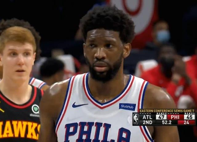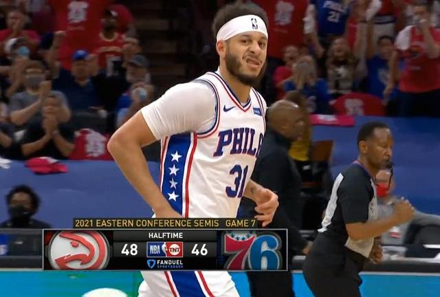 NBA季后赛东部半决赛抢七大战,费城76人队主场迎战亚特兰大老鹰。半场结束时,76人队暂时以46-48落后。在第二节时,赛斯-库里又爆发了,单节轰下8分。但除了三枪之外的其他人太低迷,所以,76人不容乐观。