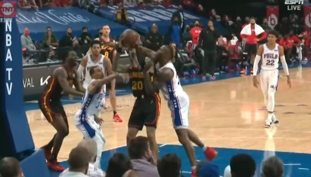老鹰进攻,特雷-杨弧顶持球炮弹直塞篮下的科林斯,霍华德补防时击打到了科林斯的头部,裁判回看录像后吹罚了霍华德一级恶意犯规。