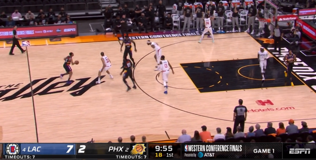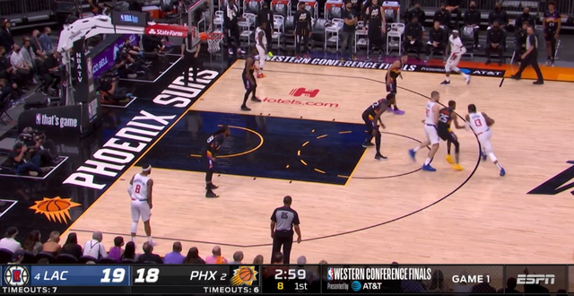 西部决赛终于开打了,少了保罗的菲尼克斯太阳VS少了伦纳德的洛杉矶快船,双方在阵容方面就开始较劲,太阳上艾顿,就是要打内线身高优势,快船则是4锋1后卫的小球阵容。
