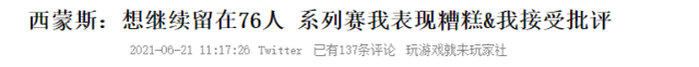 除了里弗斯被骂上热搜,西蒙斯也快被喷哭了,不过,人家却仍然有信心,他赛后首先表示自己想留队,针对自己的进攻能力问题,他表示自己在这个系列赛没发挥作用,自己仍还有很多事要做,西蒙斯首先要做的事情就是练罚球,今年季后赛至今,西蒙斯在罚球线上73次出手命中了其中的25球,罚球命中率仅仅只有34.2%,在历史上所有单次季后赛罚球出手超70次的球员中,是历史第一差。