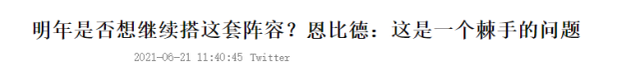 西蒙斯这边想留队,恩比德却开始留悬念了,比赛结束后,当恩比德被问道明年是否想与同样的这套阵容继续冲击,恩比德表示:“这是一个棘手的问题......我爱他们所有人。”