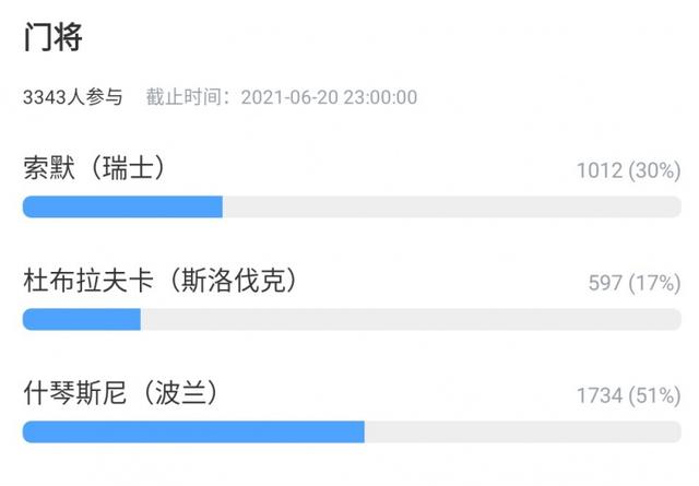 门将方面,在第2轮表现依然不在状态的波兰门将什琴斯尼,以51.87%得票率当选第2轮小组赛最衰门将。