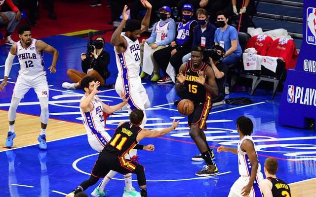 第三节前半段特雷杨连续三次助攻卡佩拉空接扣篮得分,原因就是费城忌惮特雷杨的外线三分能力,虽然手感不佳也不敢放特雷杨投篮,这样导致特雷杨能够很轻松过掉防守人,然后给卡佩拉送出助攻。在第三节结束前,特雷杨抛投打进本场第二个个人运动战进球,老鹰领先5分进入第四节。