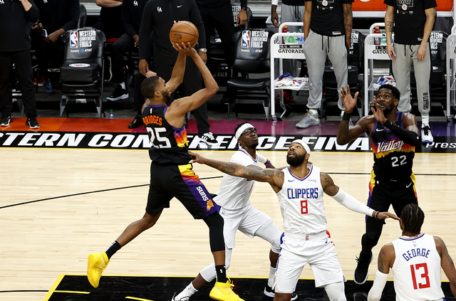第三节回来,布里奇斯的上篮,克劳德和布里奇斯连中三记三分,但乔治和曼恩连续给出回应,太阳拉开到8分分差后,乔治连续命中两记三分扳平比分。此后雷吉也命中三分,乔治和雷吉带队打出一波16-2的高潮,完成反超!后半段布克和乔治对飙,布克连拿12分,乔治三分球弹无虚发,三节打完,两队战成93平。