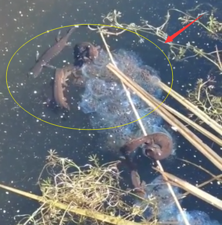 并且这些“四脚鱼”时不时地还是交替缠绕在一起,看样子是在产卵繁殖后代。曾先生表示,自己完全是出于好奇才过来查看的,在拍下视频和几张图片后,便离开去找地方钓鱼了。