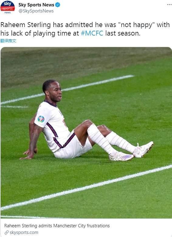 天空体育消息,斯特林承认他对自己在曼城缺乏出场时间的现状感到“不开心”。