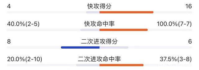 文章最后一部分简要总结一下本场比赛,并展望未来的系列赛。今天这场比赛双方有一组数据差距比较明显,即快攻得分。