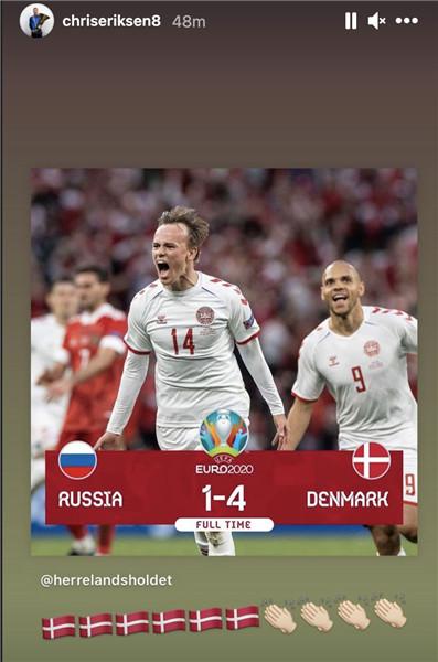 与俄罗斯比赛前一天,克亚尔给埃里克森打去电话,丹麦队长承诺:“我们一定会从小组赛突围的,16强的门票会是送给你的礼物,全队都会为你而战!”这番掷地有声的话,很快传到队友耳里并得到一致支持,电话挂断的那一刻,也就此成为“绝处逢生”的序章。