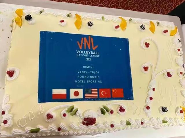 中国女排回国之前,组委会还为球队送上了祝福的蛋糕。上面是五强球队的国旗。唉!本来有机会让五星红旗独占蛋糕全屏的。不说了,说多了都是泪。