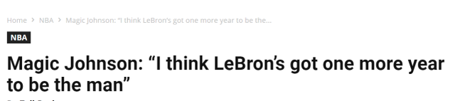 约翰逊的观点是,詹姆斯仍是现役第一人。“我认为勒布朗(詹姆斯)在这个位置上还能待一年的时间,在那之后,就是凯文-杜兰特的联盟了,”约翰逊说道,“我认为杜兰特是这个星球上最好的得分手,他们俩实力相当。勒布朗知道自己必须强势回归,而湖人也需要再打出一个漂亮的赛季。他依然能做所有的事,而且他不会轻易让出自己最佳球员的王冠。”