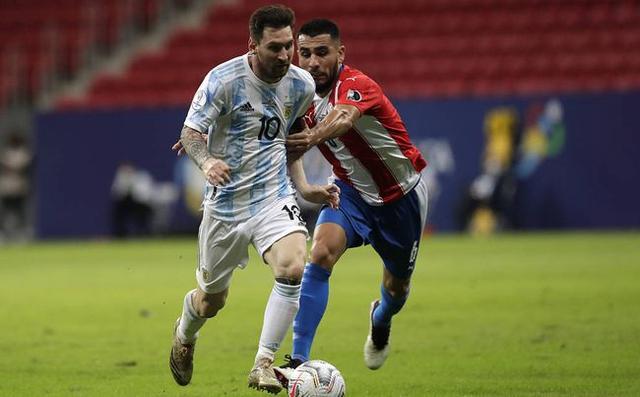 北京时间6月22日上午,美洲杯小组第三轮的一场比赛中,由阿根廷对阵巴拉圭队。
