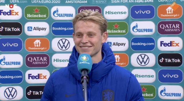 直播吧6月22日讯 今天凌晨,荷兰在欧洲杯中3-0击败北马其顿,赛后德容接受了媒体采访。