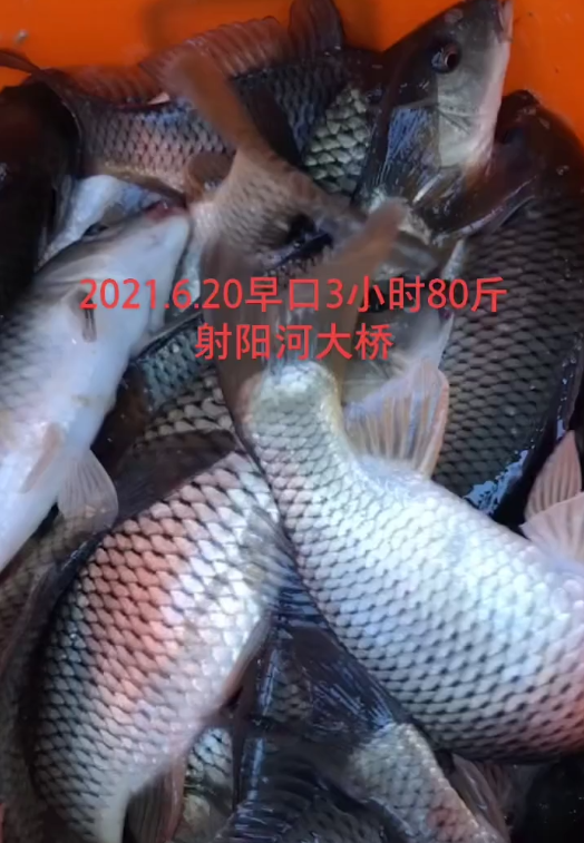 近日,一位来自江苏省盐城市射阳县的钓鱼人(@擎天柱大叔),在他发布的短视频中配以文字称:“2021年6月20日,早口3小时80斤,位置就在射阳河大桥”。