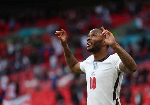 第12分钟,英格兰中场发动快速反击,连续5脚传球打穿捷克防线,格拉利什禁区左侧起脚传中,斯特林后点头槌破门,帮助球队1:0首开纪录。