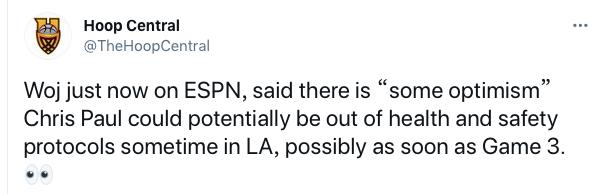 因为触发了联盟的健康和安全协议,保罗已经无缘了西决第一场,并且也不会打今天的第二场对决。