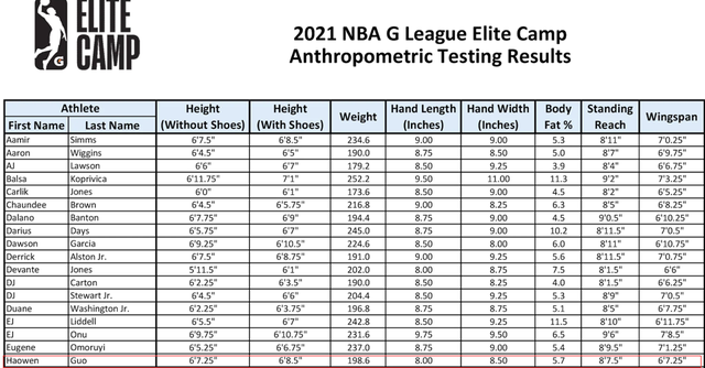 北京时间6月23日,2021年NBAG联赛精英训练营公布了球员的体测数据,正参加该训练营的中国球员郭昊文的各项体测数据也就此出炉。