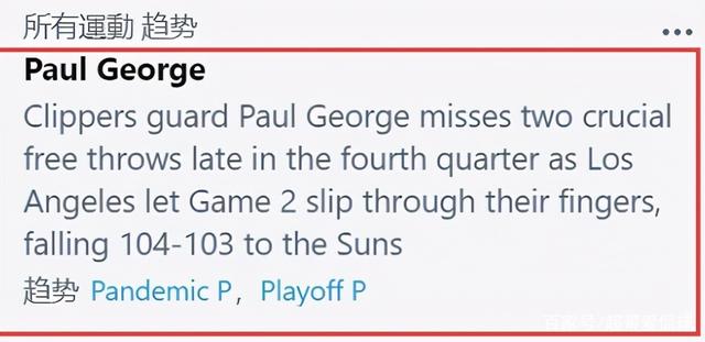 可竞技体育赢球的结局才会让球员得到最多的赞赏,赛后乔治遭遇美国媒体的批评,甚至美国网友们直接把他骂上热搜,被直接“公开处刑”,境遇惨不忍睹。