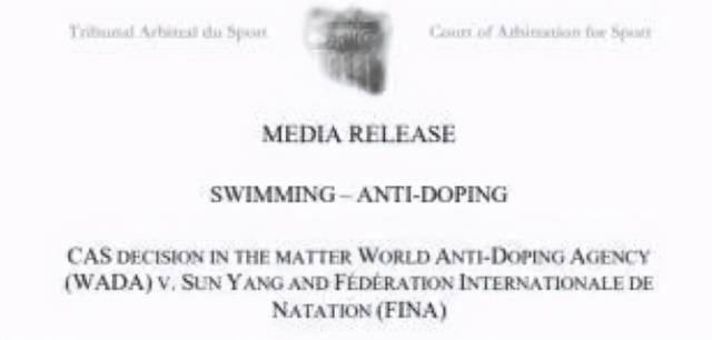 根据国际体育仲裁法庭发布的媒体公告,新的仲裁小组认定孙杨存在逃避、拒绝接受药检的行为,此举导致孙杨在2018年9月4日至5日未能成功接受兴奋剂检查。