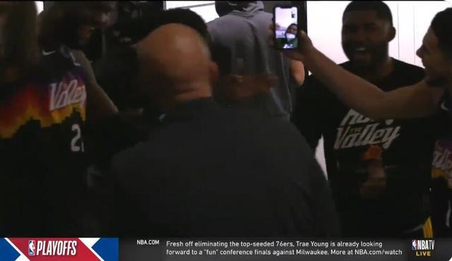 赛后克里斯-保罗又通过视频电话和队友们、主教练蒙蒂-威廉姆斯庆祝。