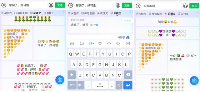 这不,百度输入法AI助聊本月迎来了升级,除了AI创作、神句配图、AI校正之外,还增加了花漾文聊天样式,不仅能够避免聊天出错,还能支持不同的内容表情图案来表达你看世界杯激动的兴趣,是不是很有个性。