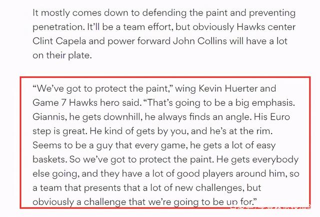 “我们必须保护油漆区,这将是一个重点。扬尼斯,总是找到机会冲击内线,他总能找到一个角度。他的欧洲步很出色的。”老鹰外线大将赫尔特表示。