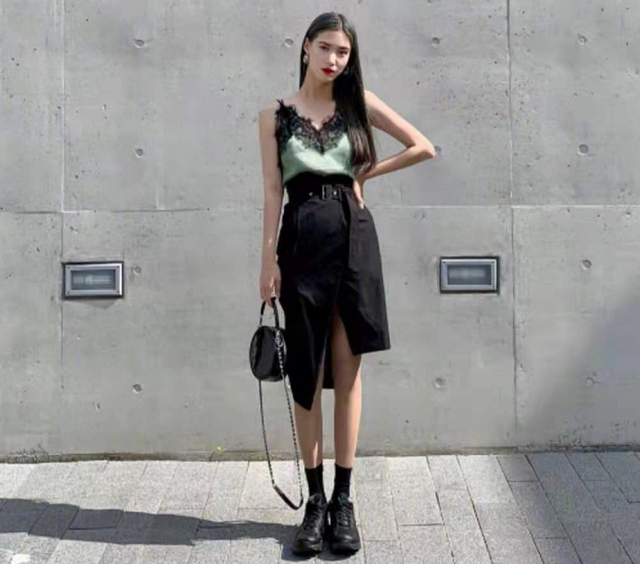 避免五五分的最好效果就是人为的将大长腿进行延伸,从而达到整个人高挑的感觉,所以在选择服装的时候,完全可以采用上短腰高的搭配法则,顾名思义就是上身选择一些比较基础的短款设计风格的服装,再与高腰设计的下装相结合,这样能够起到1+1>2的效果,并且适当的露腰设计,还能够在造型中增添小性感,让大长腿跟小蛮腰共同展现出来。