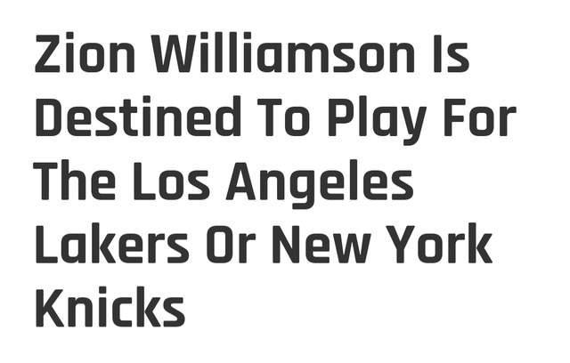 根据美国媒体的爆料,锡安.威廉姆森注定会为这两支球队效力,一支球队是洛杉矶湖人而另一支球队则是纽约尼克斯。这两支球队都将是锡安.威廉姆森最好的落脚地,并且他们也有足够理由去这两支球队发展。