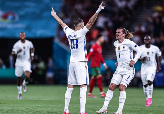 北京时间6月24日凌晨,欧洲杯小组赛F组第3轮迎来强强对话,葡萄牙在普斯卡什球场迎战法国!上半场,姆巴佩错失单刀,洛里和塞梅多各自送点,C罗和本泽马各自点球命中,下半场,本泽马再造点并亲自命中,C罗也打进自己制造的点球,全场比赛结束,两队2-2打平,法国队以小组第1晋级,葡萄牙4分以小组第3晋级。