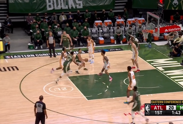 老鹰这边依旧让特雷杨持球打,利用节奏突到篮下抛投不进,但特雷杨拼下篮下再次上篮打进。霍乐迪面对科林斯防守,一个转身拉开身位,直接上篮得手,特雷杨继续借助掩护杀到篮下再用抛投攻筐,杨开局连续用了三个抛投,这手感是真细腻。字母哥顺下接球,扛着防守球员直接上篮打成2+1,继续杨持球过半场,通过一个换防把大洛换到杨的面前,特雷杨一个经典小打大再砍两分,两队的比分追得非常紧。