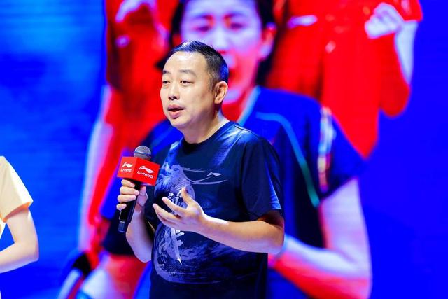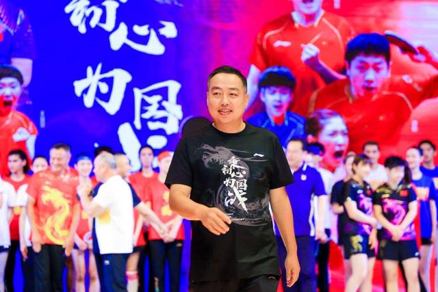 刘国梁在发布会现场。“保三拼四争五”,这就是国乒在东京奥运会的目标。6月23日,是东京奥运开幕式倒计时30天的日子,在这一天,国乒也披上了他们全新的战袍。
