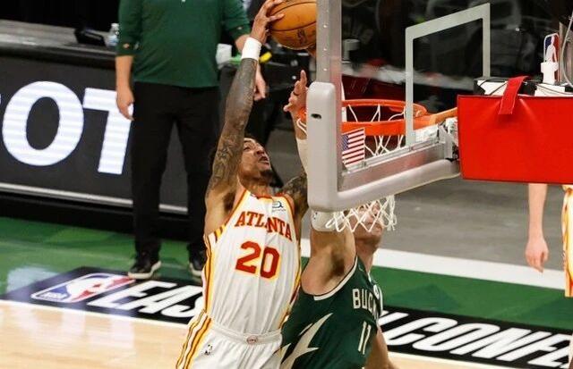而今天米德尔顿在防守端也很糟糕,由于卡佩拉无限的给特雷-杨打挡拆,而杨少侠速度又快,米德尔顿完全跟不上,如果不换防的话特雷杨就靠速度生突他,但如果字母哥和米德尔顿换防的话,他又顶不住卡佩拉,因此只要老鹰他们两人打出合理的挡拆,他们的成功率就高达80%,因此米德尔顿今天进攻没打开,就成为了防守端的提款机。