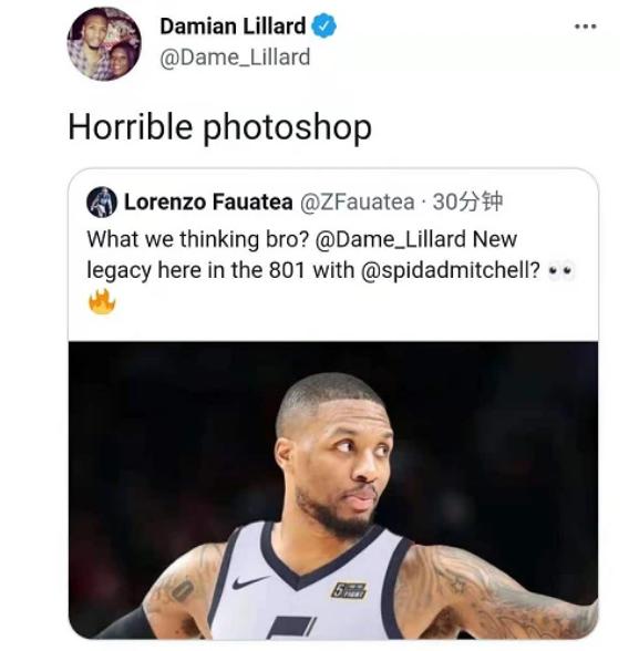 只是目前利拉德正在积极参与开拓者选帅工作,离队的概率并不大。在此前有网友P图他穿爵士球衣联手米切尔,但利拉德本人转发了如此动态,还写道,“可怕的PS。”