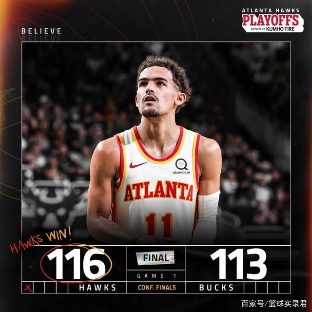东决G1,老鹰客场116-113战胜雄鹿,大比分1-0领先,此战两队焦灼了整整48分钟,比分多次交替领先,分差最大没达到过两位数,最终老鹰在最后四分钟打出一波18-8,成功拿下系列赛首胜。