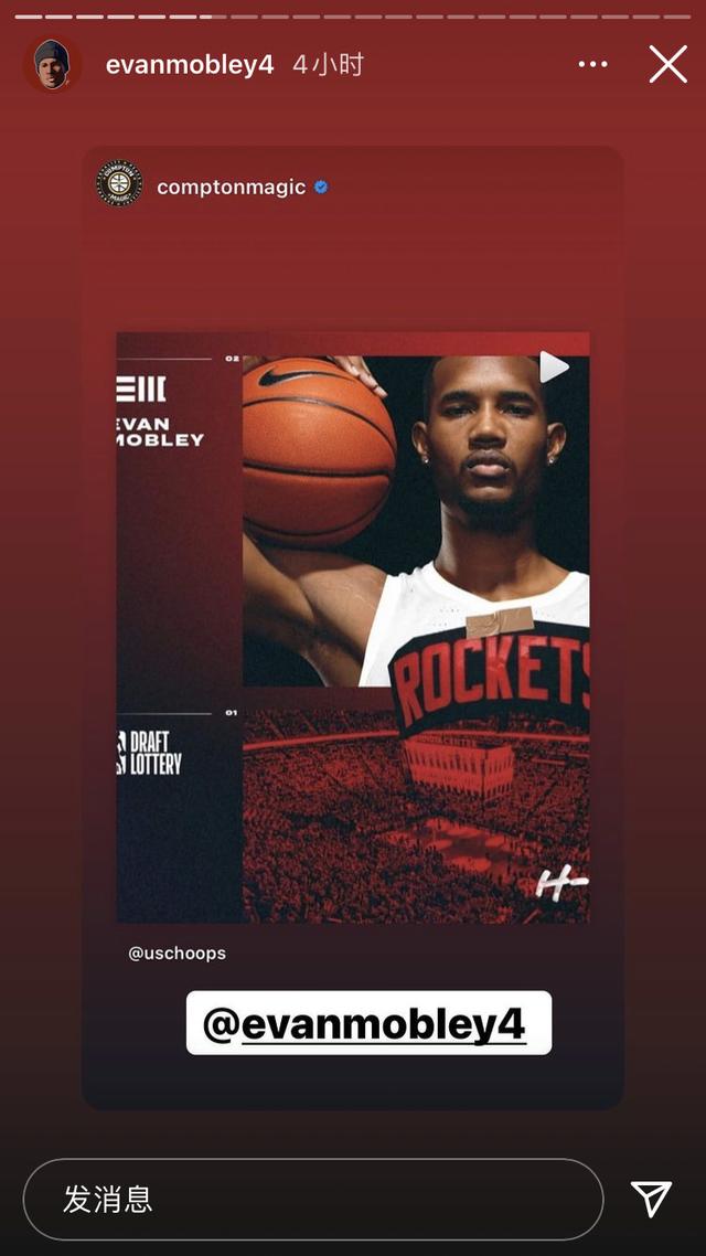 值得一提的是,就在火箭获得榜眼签之后,身高达到2.13米的天才中锋莫布里在社媒上发了一条动态,示好火箭想要加入,很明显,莫布里想要成为榜眼秀,他愿意为休城效力。莫布里发布了一张自己和火箭主场丰田中心的合成图,意思已经很明显了,就看火箭是否愿意用榜眼签选他了。