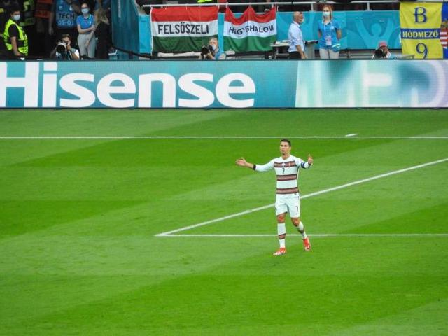 对C罗身后这些LED屏来说,有件事很幸运。它们不像赛后发布会上的可乐瓶子一样可以被C罗任性地拿开(这已经是本届欧洲杯上最大的出圈事件了),以此标榜自己对自己的身体管理有多苛刻。C罗纵使体脂率只有7%、依然有近乎20岁的身体素质,但他可搬不走那些广告牌。