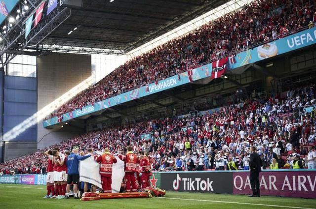 欧洲杯上,丹麦队的埃里克森突然休克倒地,队友们围成一圈,保护他的隐私。/图片由受访者提供