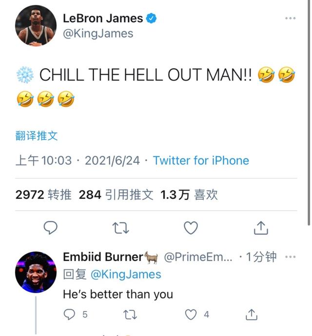 有趣的是,底下有恩比德球迷评论道:“他比你强!”
